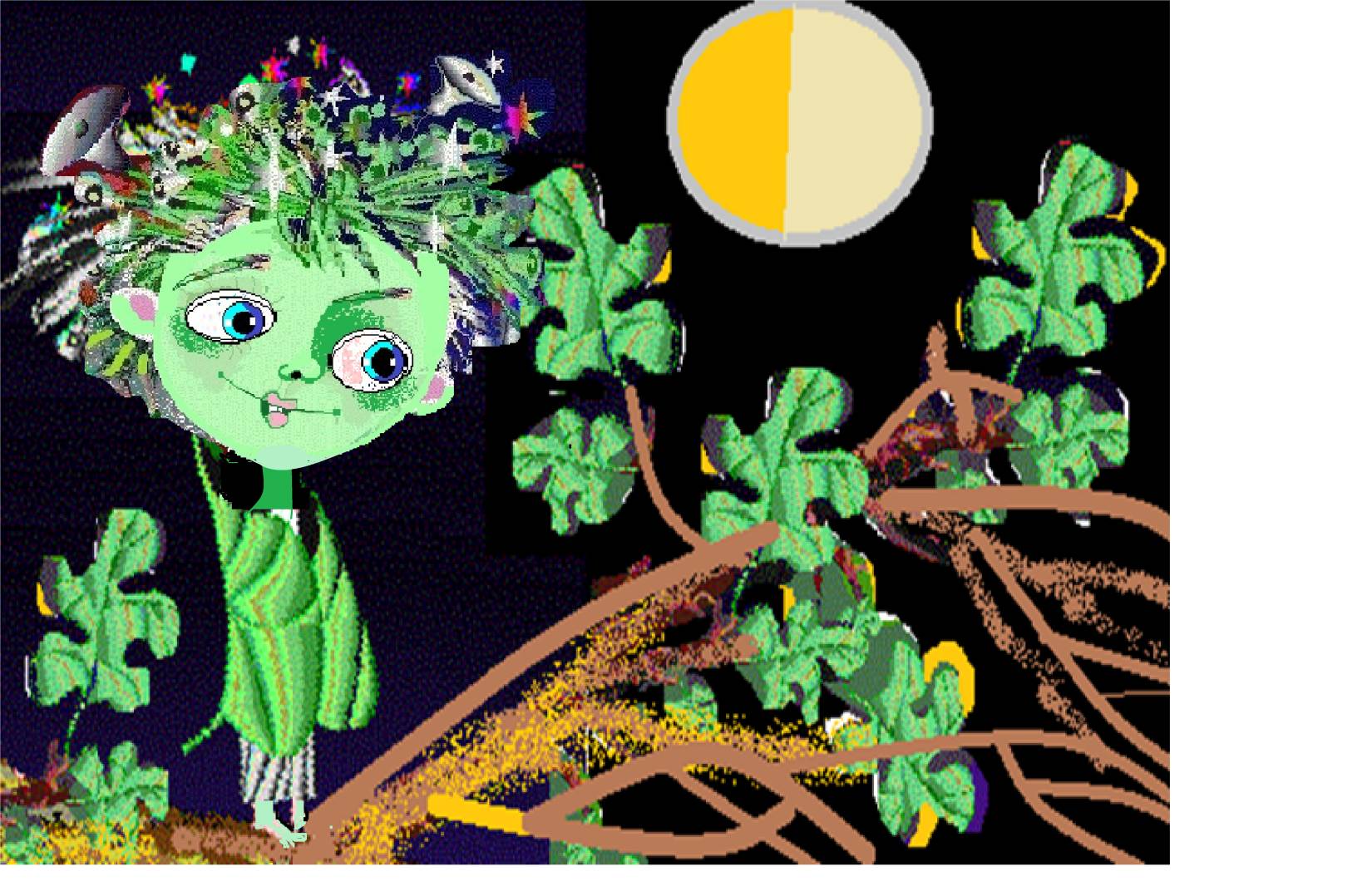 Но… если бы они его увидели, то уж, конечно, убегать от страха не пришлось бы. Уж очень смешной и милый этот зелёный человечек. Вот он какой, – лесной Кикиморка.