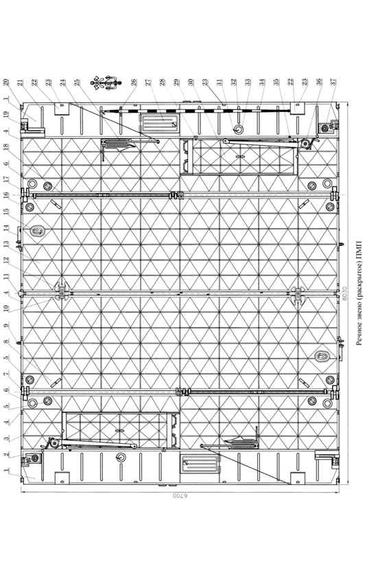 Средние понтоны соединяются между собой (в плоскости днища) двумя днищевыми петлями, при открытии которых и развертывании звена образовываются полузвенья для сборки 20-т моста. В плоскости палубы средние понтоны замыкаются двумя палубными замками.