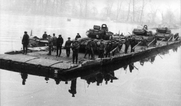 Поезд – Москва – Чоп – Миловицы – штаб ЦГВ. Электричка до Оломоуца, ночью 131-й ЗиЛ выгрузил в парке 1257 отдельного понтонно-мостового батальона. В 1945 в Оломоуц въехал мой дед, Дерябин Анатолий Степанович, только не на 131-м, а на 34-ке. Утром весь парадный, представление комбату. Комбат подполковник Заболотный Владимир Аникандрович, взгляд сверху, повторяй матчасть, через месяц в лагеря, а завтра дежурным по военной комендатуре города, все. В лагерях батальон был постоянно, летом и зимой под Прагой, весной и осенью на Либавском полигоне. Батальонный мост через р. Лаба (Эльба) собирали за девять минут, чехи в поселке Горни Почапли говорили, что днем гремят, что ночью без фар гремят. Через два года получил роту. В 1989 году на учениях стран Варшавского договора батальон в последний раз переправил танковую дивизию, это были последние наступательные учения Советской Армии, потом Горбачев объявил, что мы мирные люди и через пару месяцев батальон погрузили в эшелоны и отправили в Союз, чтобы не мозолить глаза новоявленным друзьям. С нашего батальона в 1989 году начался вывод наступательных вооружений из Центральной группы войск. До развала Союза оставалось два года, когда начался вывод всей армии. «Мы мирные люди, но наш бронепоезд» Горбачев забыл поставить на запасный путь ….