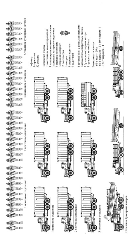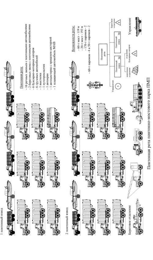 В Советской Армии понтонно-мостовые батальоны входили в состав понтонно-мостовых полков (по два батальона в полку) или были отдельными. В каждой мотострелковой (танковой) дивизии в составе отдельного инженерно-саперного батальона была своя понтонная рота (полупарк).