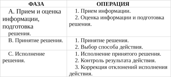 Этот процесс имеет определенную цикличность (оперативный цикл), включающий в себя следующие фазы (табл.1):