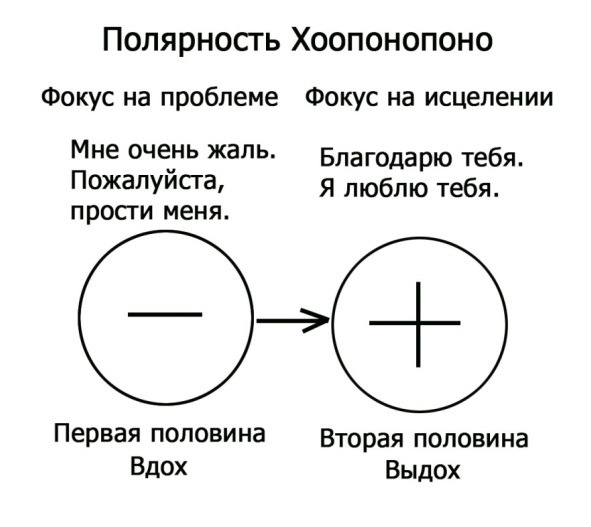 Совет: Для удобства использования разбейте четыре фразы Хо’опонопоно на две половины: