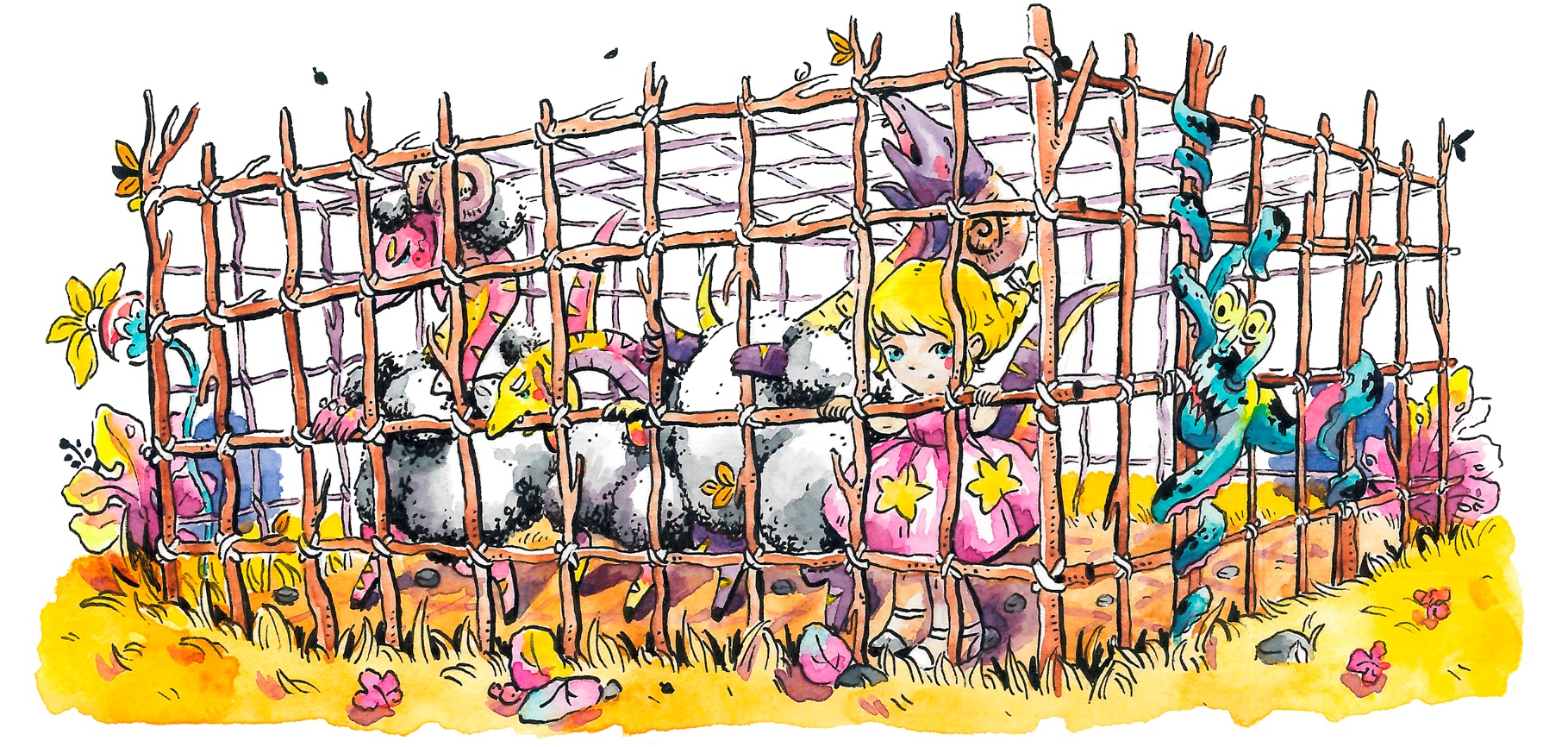 Стражники свалили Лисану и баранозаврят на землю и заперли в клетке. Замок крепко обмотался вокруг лиан, запечатав вход. Свинорыл проверил, хорошо ли закрыта дверь, задумчиво почесал бок и, оставив двух стражников охранять нарушителей, направил остальной отряд назад к Жилистому болоту.