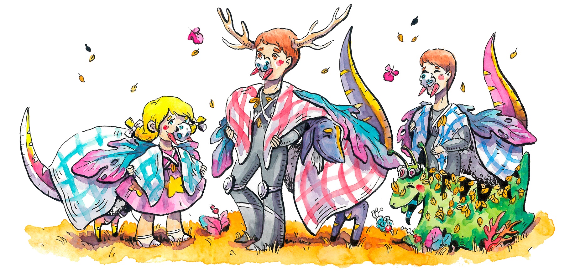 Баранозавры разбежались по лесу в поисках крыльев, клыков и пятачков, а Лисана с папой и мамой вытащили пледы, и, вооружившись ножницами, стали кроить из них подобие одежды.