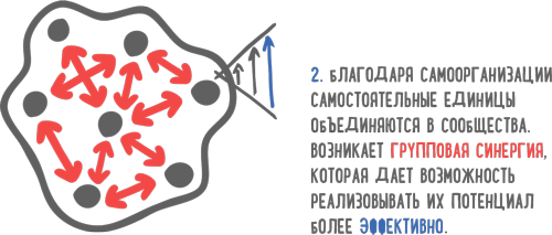 Многие мыслители издавна занимались вопросом определения добра и зла. С точки зрения самоорганизации эволюционным добром можно обозначить как раз деятельность эго-2.0 – то, что индивидуум может совершать поступки, помогающие не только ему, но и остальным членам общества. Такая альтруистическая совместная работа приводит к развитию как индивидуумов, так и группы в целом.