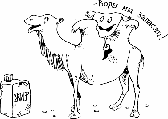 Жиры, как и углеводы, используются в организме вместо дров и, сгорая, отдают в два раза больше энергии, чем углеводы или белки. Поэтому жир в организме запасается впрок. Жир используется и как запас воды, так как после его сгорания вместо углей и пепла остается значительное количество воды. С этой целью в безводных пустынях жиры запасают верблюды. Благодаря запасам жира наши медведи зимой в берлоге не только не голодают, но и не испытывают жажды, хотя многие месяцы не пьют и не едят. Подкожный жир защищает животных от охлаждения. У китов его толщина достигает 70 сантиметров. Кроме того, жир откладывается вокруг важных внутренних органов, сердца, почек, кишечника, предохраняя их от механических повреждений.