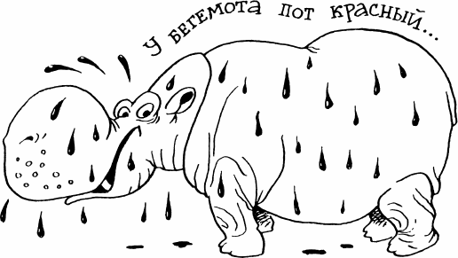 Потовые железы выделяют бесцветную жидкость, на 98–99 % состоящую из воды. Остальное – это в первую очередь обычная поваренная соль и соли других веществ, а также кислоты, аммиак, жировые вещества, ацетон и ароматические вещества. Пот лошадей, к примеру, содержит белок. Это придает ему вид белой пены. Вот почему про вспотевшую лошадь говорят, что она в мыле. У некоторых животных пот цветной. У бегемотов и больших кенгуру он красный. Некоторые потовые железы человека выделяют пот иного состава. Желёзки, находящиеся около ресниц, выделяют более густой пот, а находящиеся в ушных проходах – ушную серу.