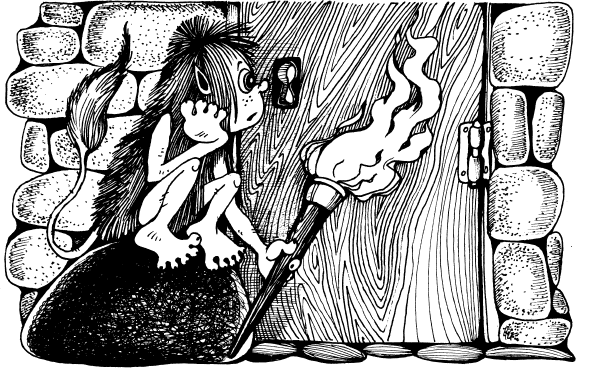 Аля поднатужилась и сдвинула камень с места в надежде обнаружить под ним нору – ничего подобного, ни одной дырочки, куда можно было бы спрятаться… Тогда бяка сняла со стены горящий факел и при ярком свете ещё раз изучила пол. По-прежнему ничего примечательного…