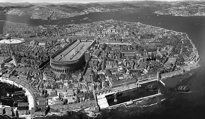 Численность населения Византии – самой большой страны того времени в Европе и Средиземноморье – составляла около 7 миллионов человек. Из них около половины жило в европейской части страны. В столице – Константинополе – жило около 500 000 человек. Армия Византии насчитывала 100–120 тысяч человек. И это была огромная многонациональная империя! Чтобы прокормить такую армию, требовалось 150–180 тонн зерна в день, а в год – не меньше 55‑ти тысяч тонн! А еще необходимо мясо, фураж для лошадей. Представьте себе, насколько трудоемким делом была подготовка любого похода. Ведь за отрядом, который шёл, к примеру, на 300–400 километров в сторону восточной границы, тащились телеги с тоннами припасов!