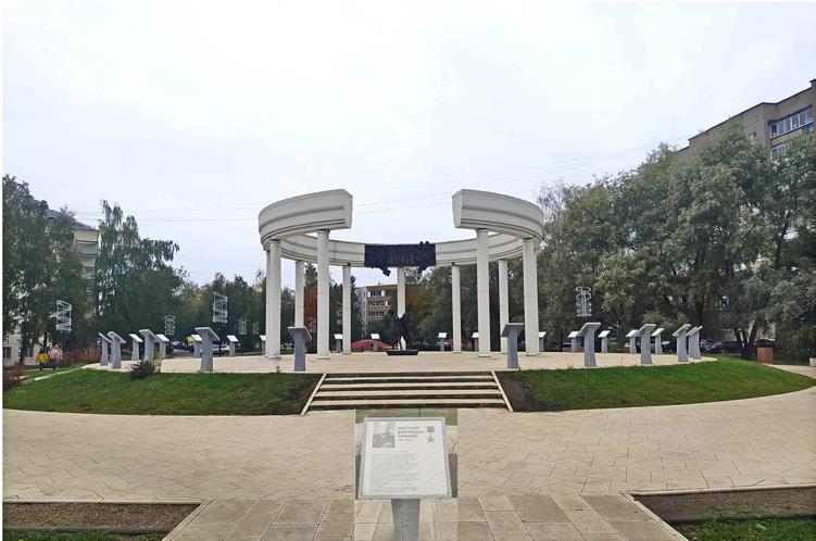 Илл. 75. Стела с портретом и биографией А. Д. Алексеева. Мемориальный комплекс Героев Советского Союза на бульваре Кузнецова в г. Сергиев Посад. Фото И. Б. Барышева, 2022 г.