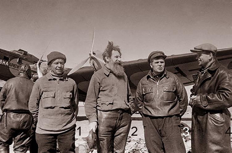 Илл. 42. Участники экспедиции «СП-1»: В. С. Молоков (1), О. Ю. Шмидт (2), М. В. Водопьянов (3), А. Д. Алексеев (4). Фото из открытых источников