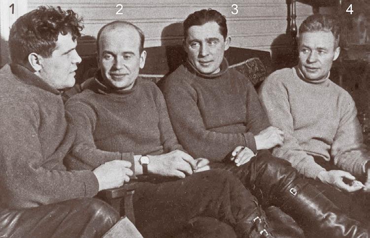 Илл. 43. Командиры самолетов экспедиции на Северный полюс, 1937 г. Слева направо: М. В. Водопьянов (1), А. Д. Алексеев (2), И. И. Мазурук (3), В. С. Молоков (4). Из домашнего архива Д. А. Алексеева