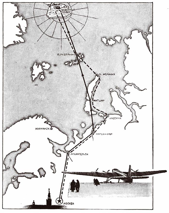 Илл. 45. Схема полёта экспедиции к Северному полюсу