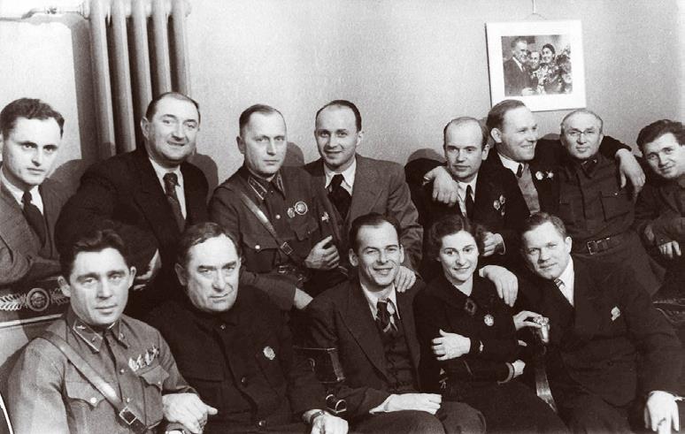 Сидят: флаг-штурман И. Т. Спирин (первый слева), артист Н. К. Черкасов (третий слева).
