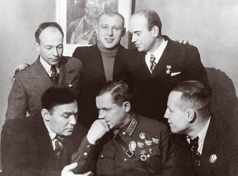 Илл. 58. Герои Советского Союза, участники экспедиции к Северному полюсу 1937 г. Открытка 1937 г. (Блестящая победа Советской авиации. Набор открыток. – М.: Искусство, 1937.)