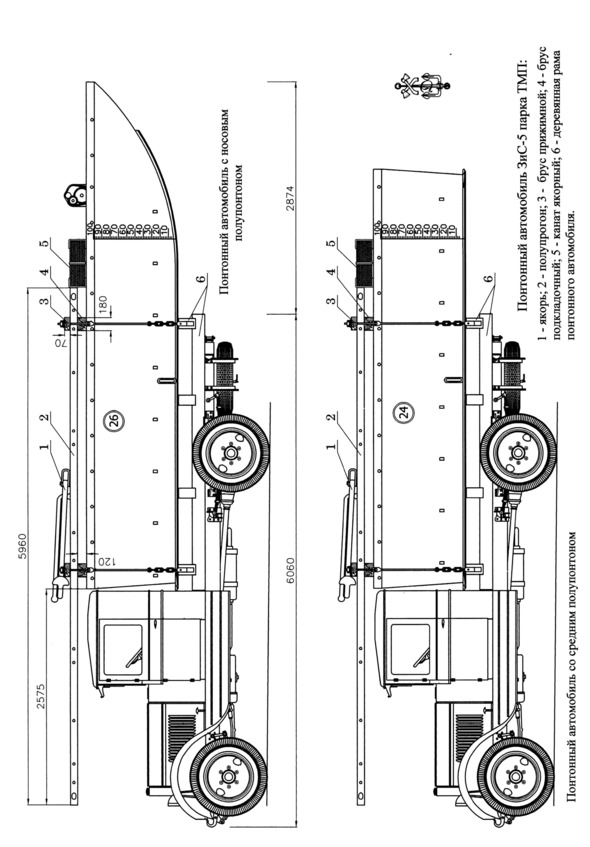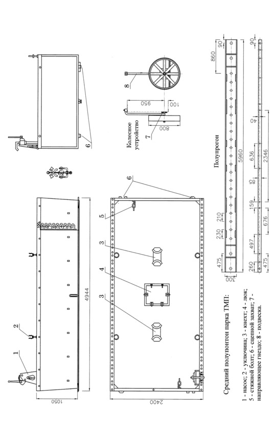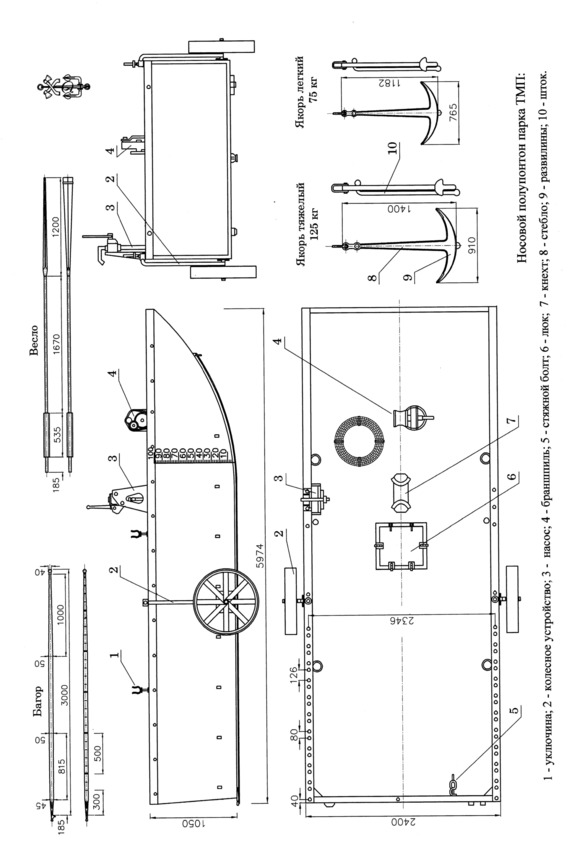 На палубе полупонтона имелся люк с водонепроницаемой крышкой, сварной кнехт для закрепления якорного и буксирного каната, фундамент под съемный брашпиль.
