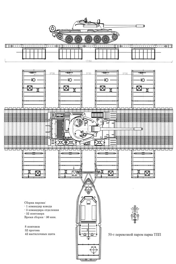 Тяжелый понтонный парк ТПП являлся штатным переправочным средством инженерных войск, обеспечивающим оборудование мостовых и паромных переправ для пропуска всех войсковых грузов.