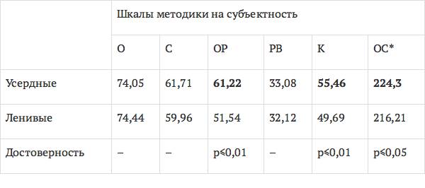 Различия в показателях субъектности между «усердными» и «ленивыми» студентами-первокурсниками