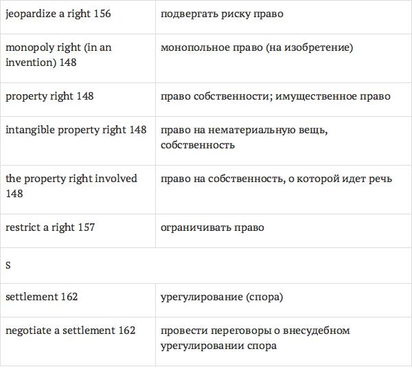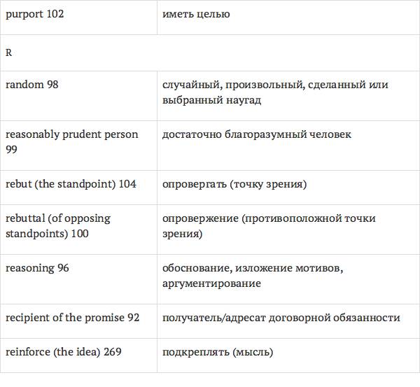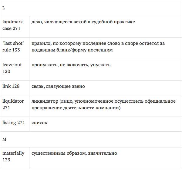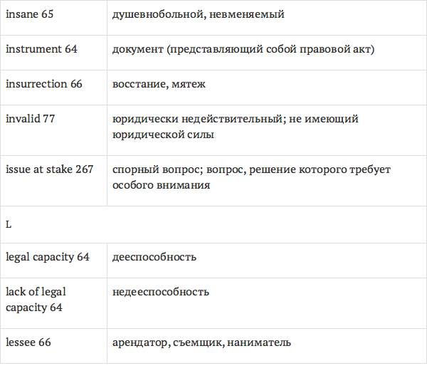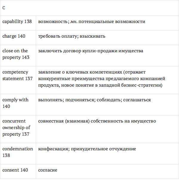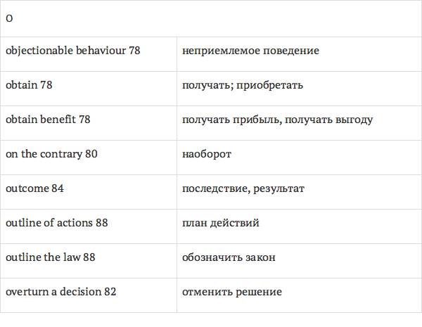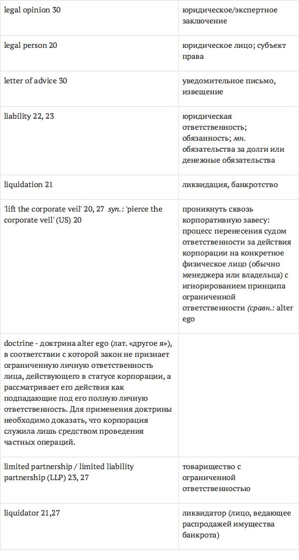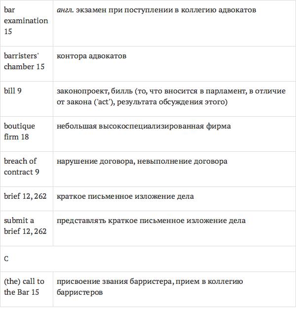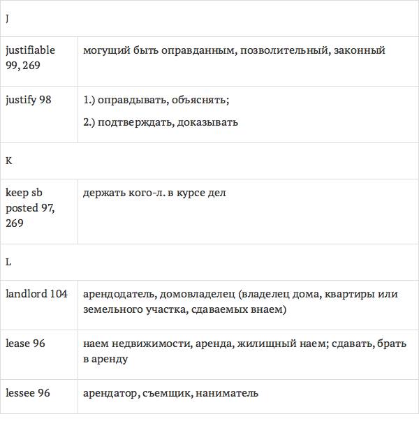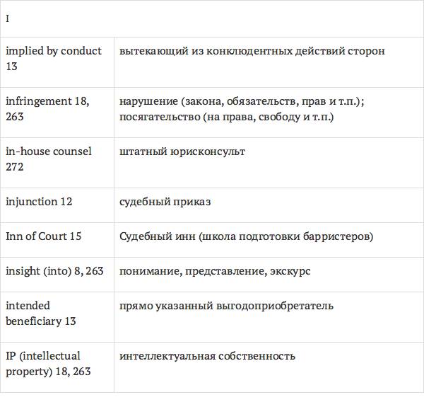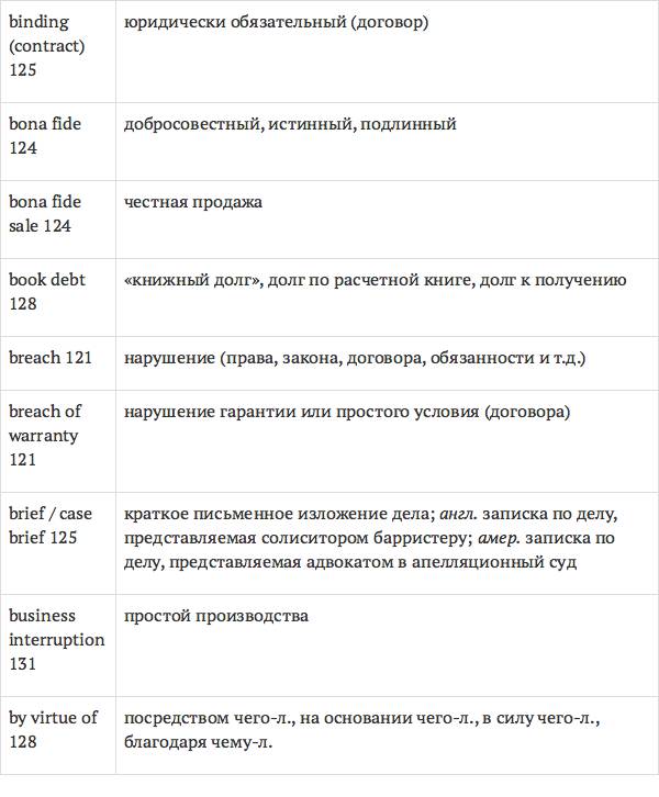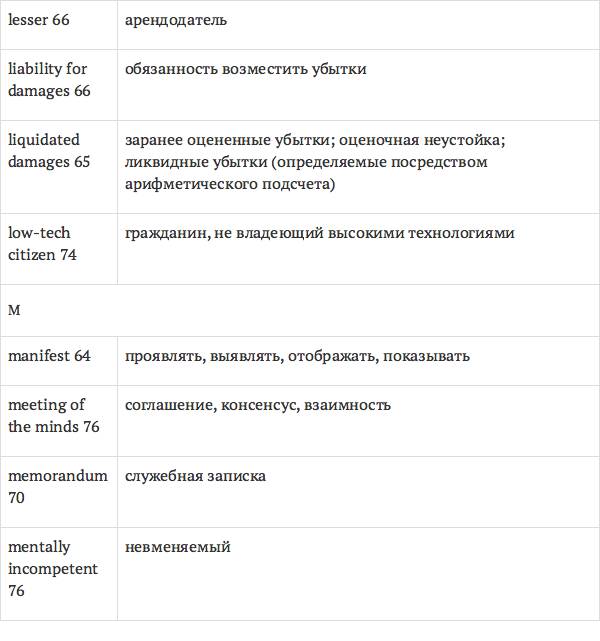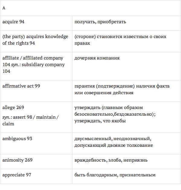 Данный глоссарий является юридическим терминологическим словарем, составленным к учебному комплексу по английскому языку для юристов International Legal English (издательство Cambridge University Press). Настоящий глоссарий можно считать как переводным (в основном слова и выражения переведены с английского на русский язык), так и толковым (отдельные термины сопровождаются пояснениями и комментариями). Глоссарий содержит более 2200 терминов и устойчивых словосочетаний, характерных для таких областей права, как договорное право; право, регулирующее деятельность акционерных обществ; вещное право; трудовое право и др.