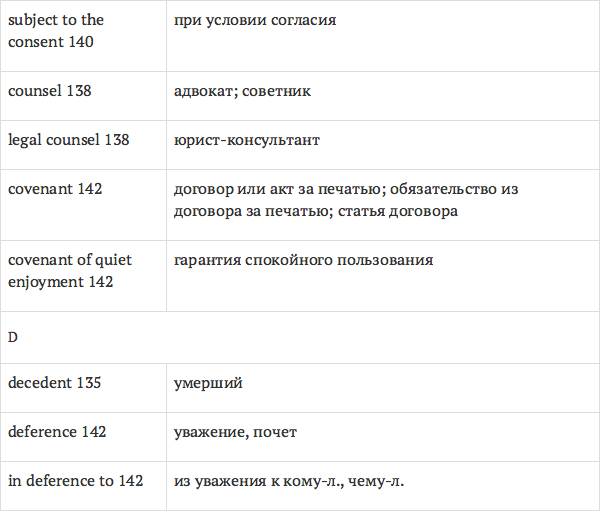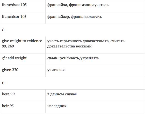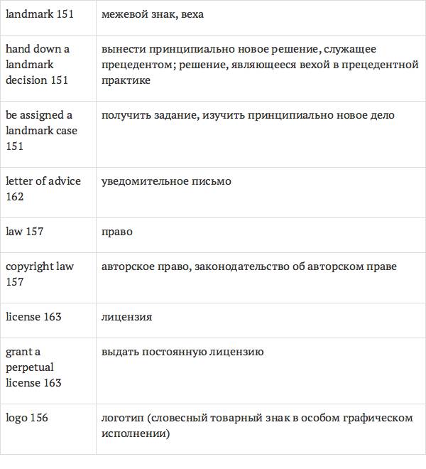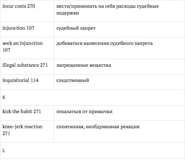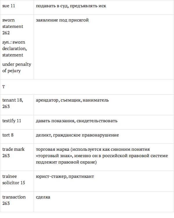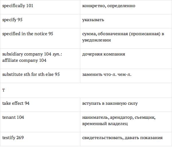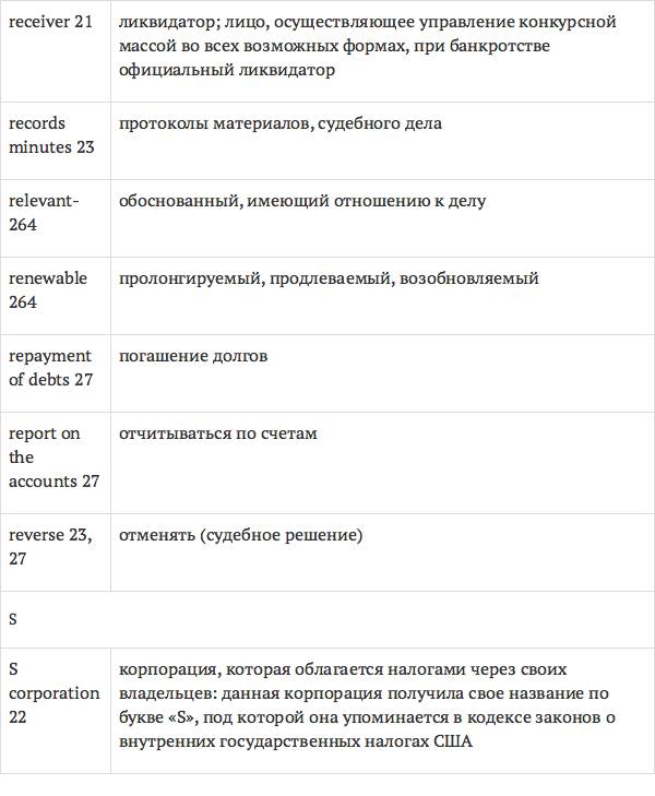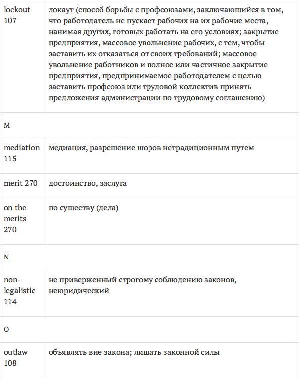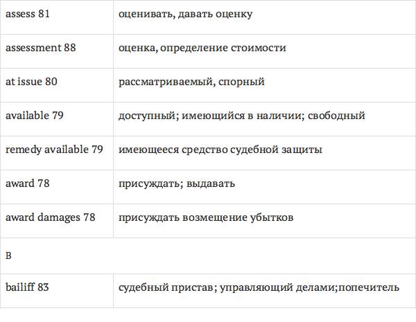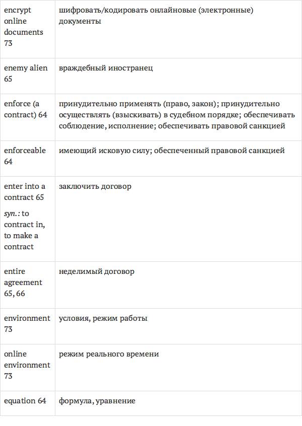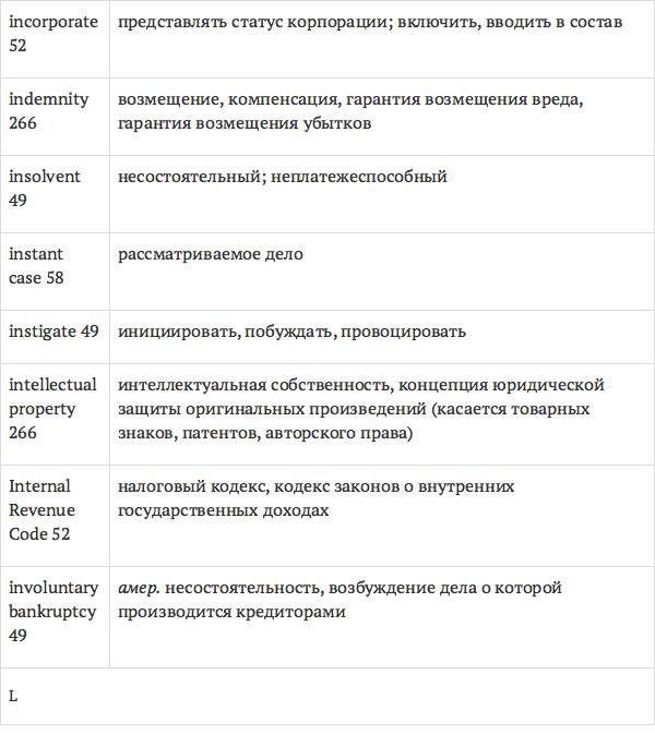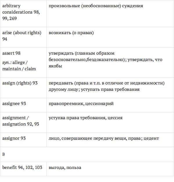 Данный глоссарий является юридическим терминологическим словарем, составленным к учебному комплексу по английскому языку для юристов International Legal English (издательство Cambridge University Press). Настоящий глоссарий можно считать как переводным (в основном слова и выражения переведены с английского на русский язык), так и толковым (отдельные термины сопровождаются пояснениями и комментариями). Глоссарий содержит более 2200 терминов и устойчивых словосочетаний, характерных для таких областей права, как договорное право; право, регулирующее деятельность акционерных обществ; вещное право; трудовое право и др.