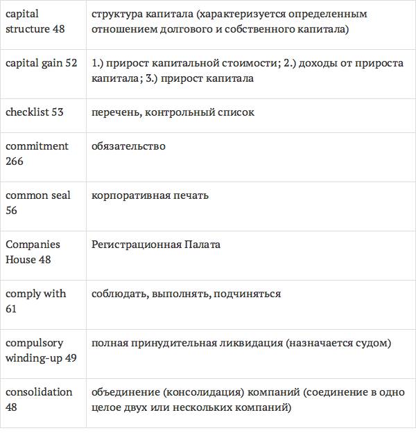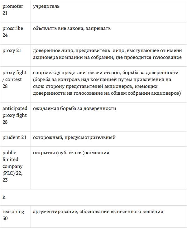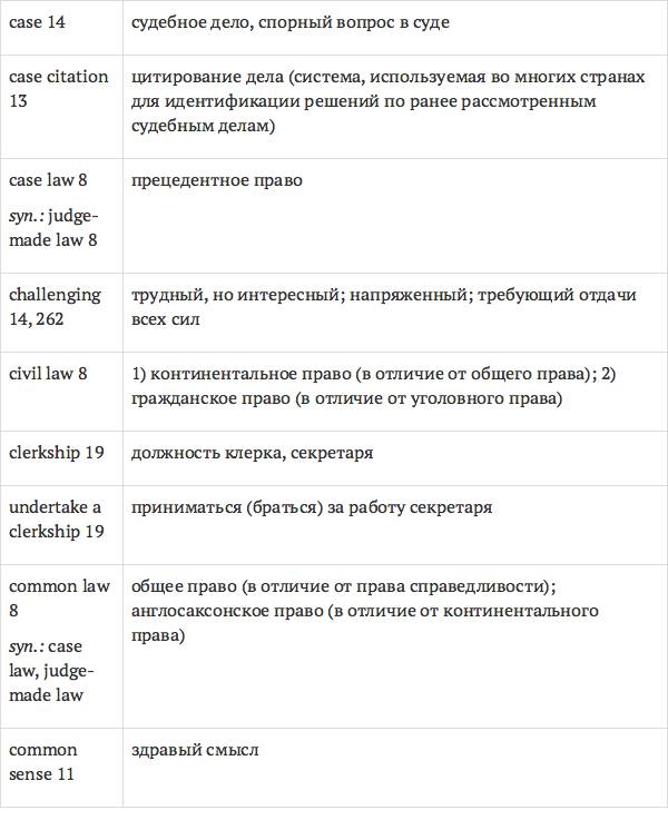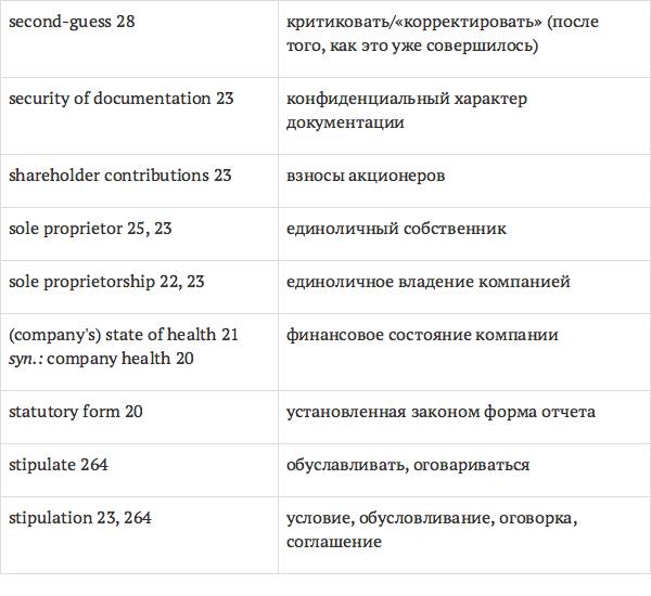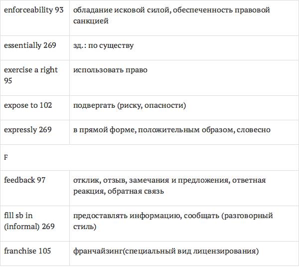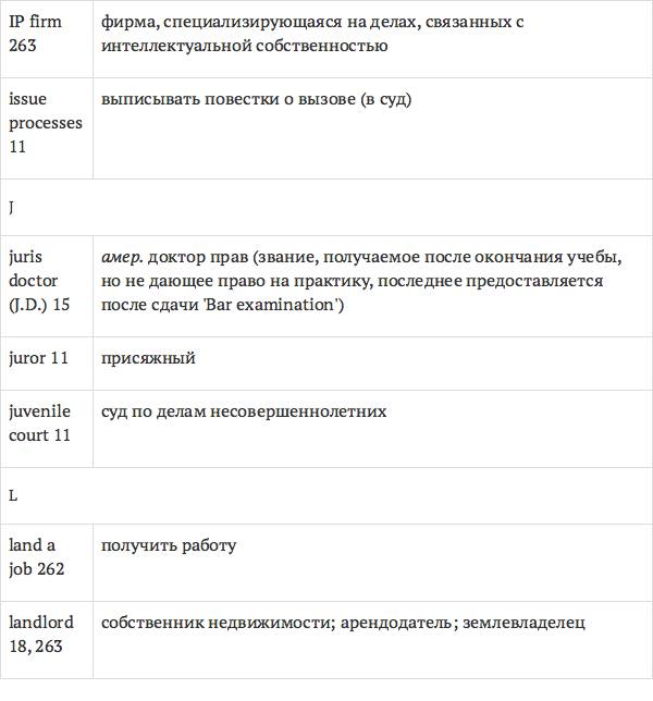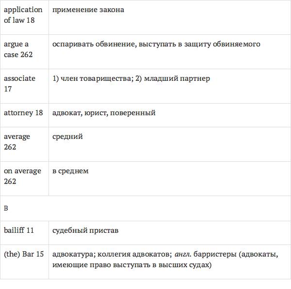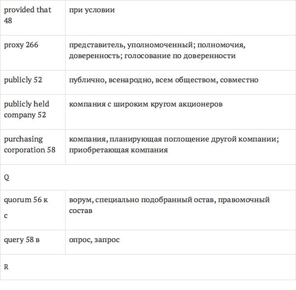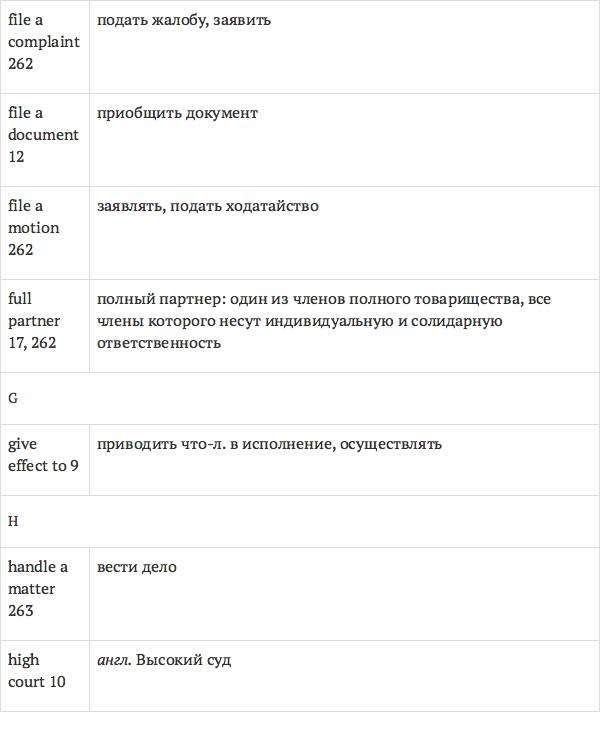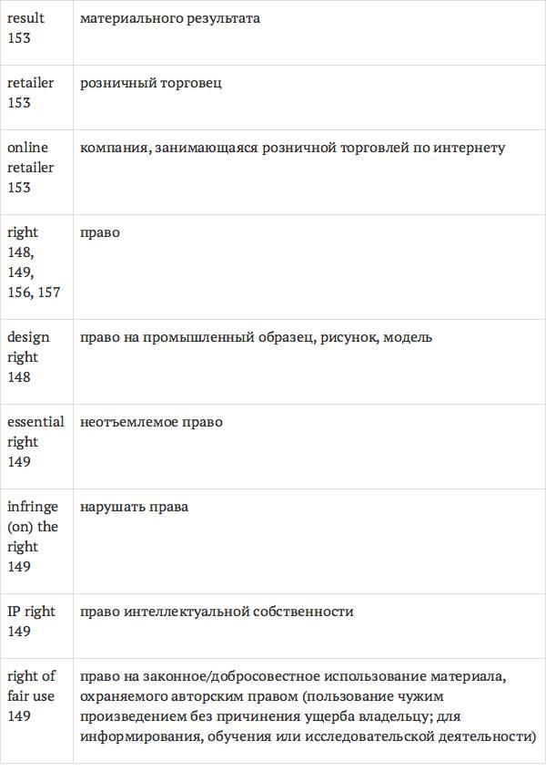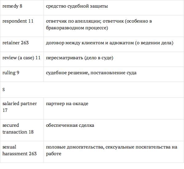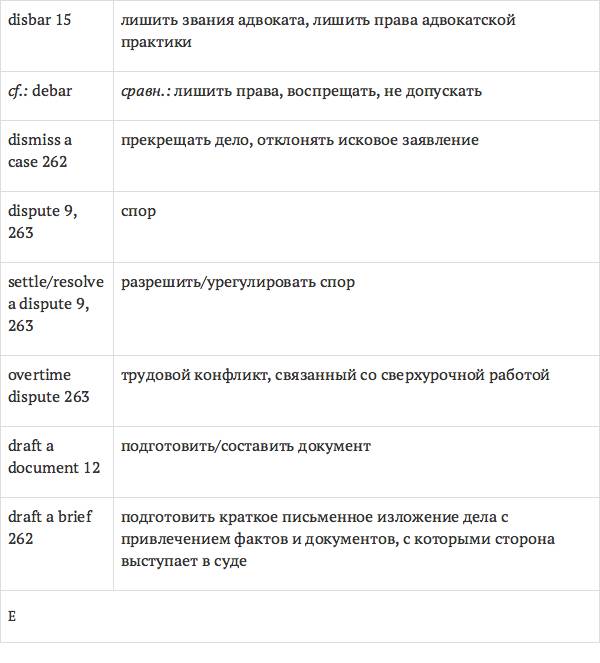 Данный глоссарий является юридическим терминологическим словарем, составленным к учебному комплексу по английскому языку для юристов International Legal English (издательство Cambridge University Press). Настоящий глоссарий можно считать как переводным (в основном слова и выражения переведены с английского на русский язык), так и толковым (отдельные термины сопровождаются пояснениями и комментариями). Глоссарий содержит более 2200 терминов и устойчивых словосочетаний, характерных для таких областей права, как договорное право; право, регулирующее деятельность акционерных обществ; вещное право; трудовое право и др.