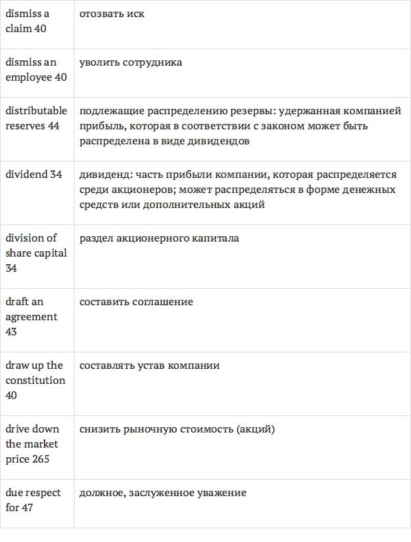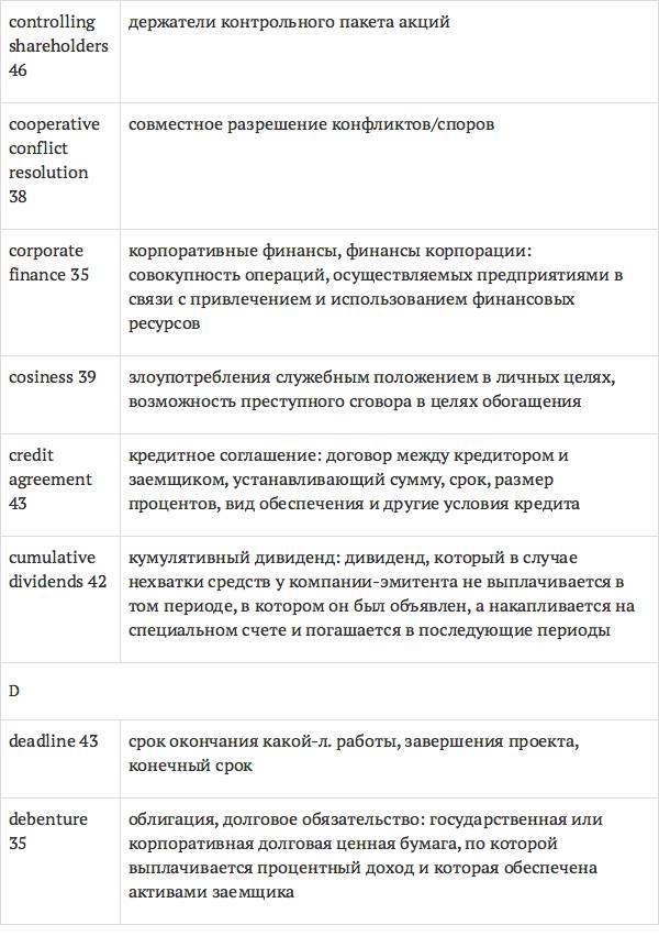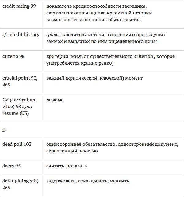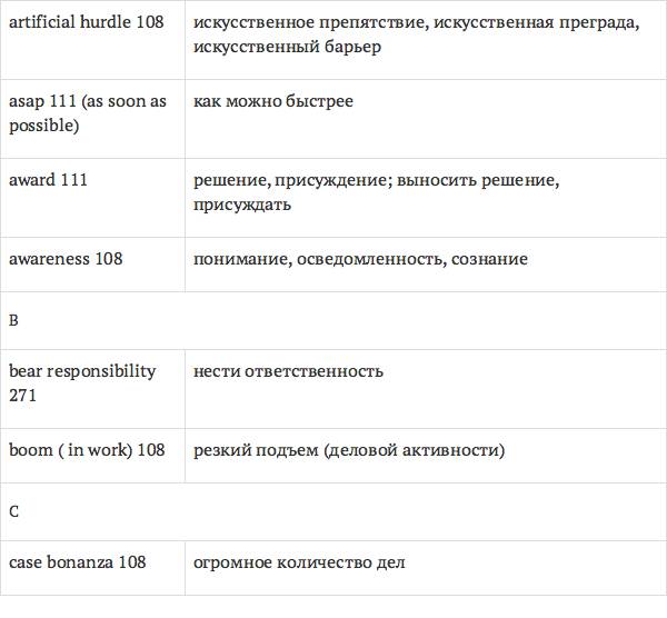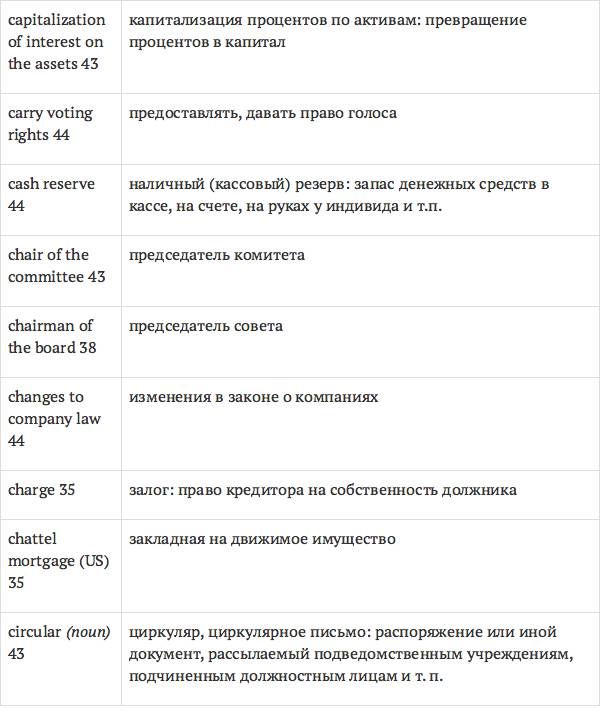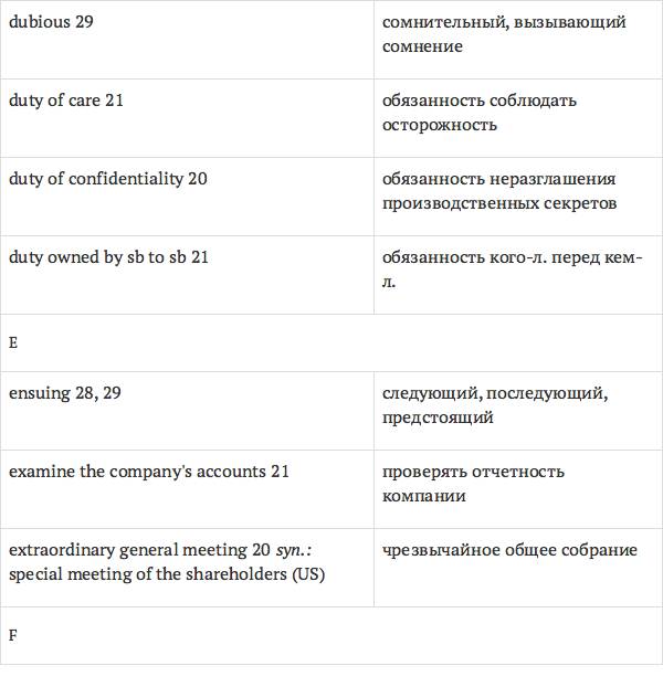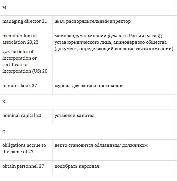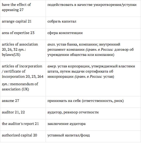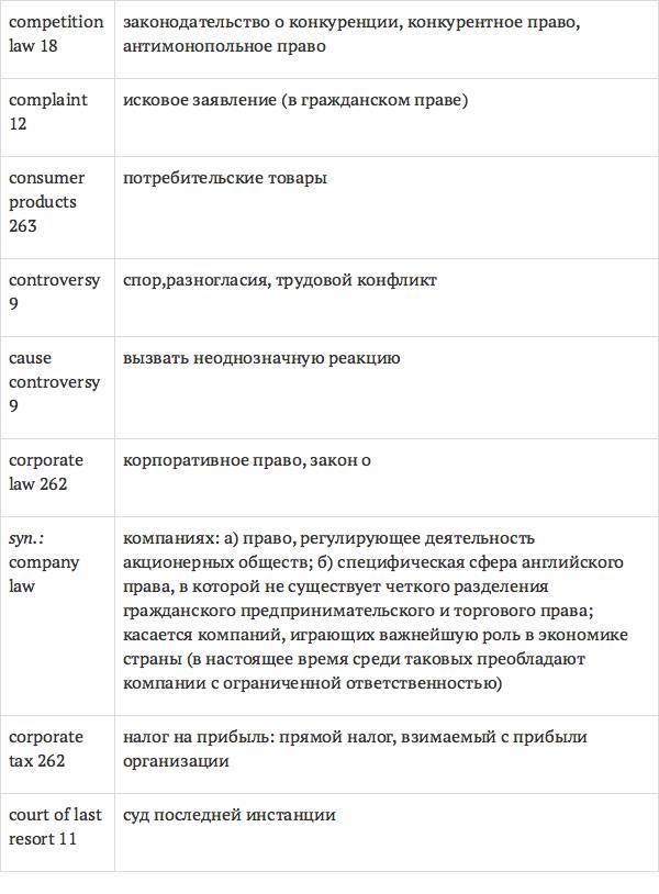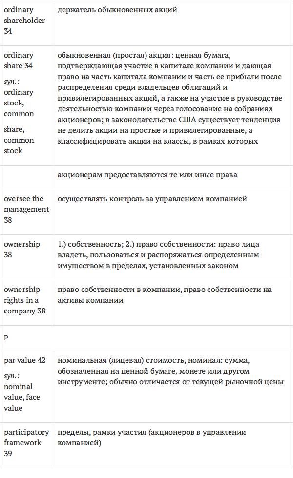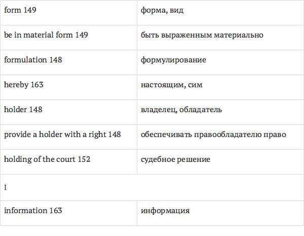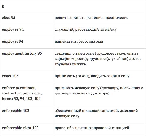 Данный глоссарий является юридическим терминологическим словарем, составленным к учебному комплексу по английскому языку для юристов International Legal English (издательство Cambridge University Press). Настоящий глоссарий можно считать как переводным (в основном слова и выражения переведены с английского на русский язык), так и толковым (отдельные термины сопровождаются пояснениями и комментариями). Глоссарий содержит более 2200 терминов и устойчивых словосочетаний, характерных для таких областей права, как договорное право; право, регулирующее деятельность акционерных обществ; вещное право; трудовое право и др.