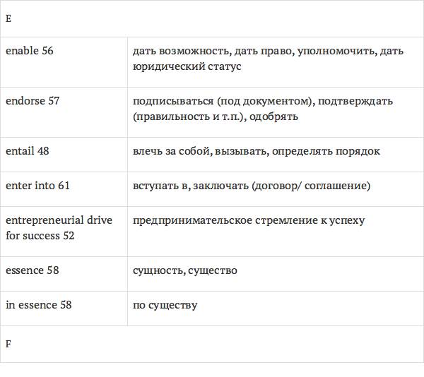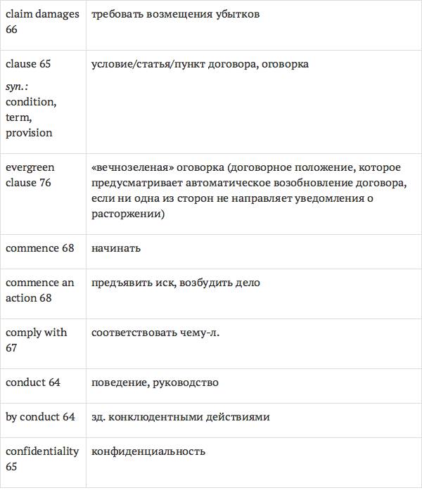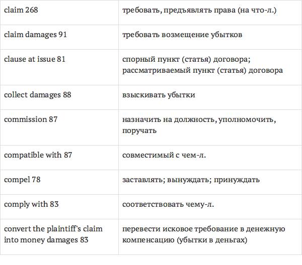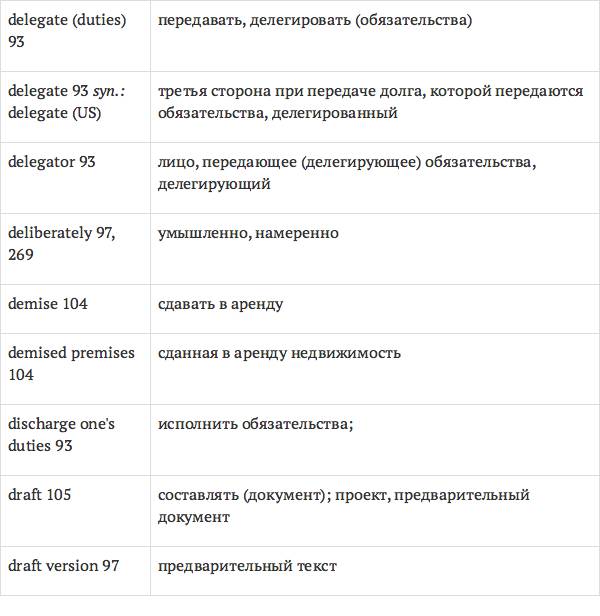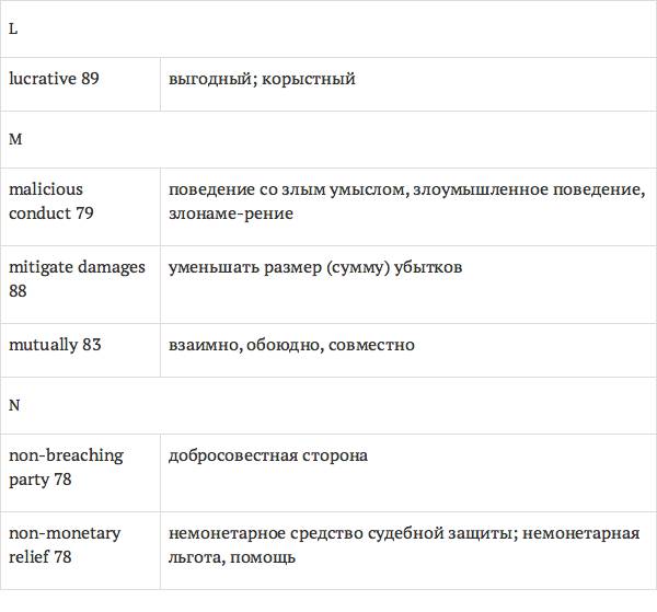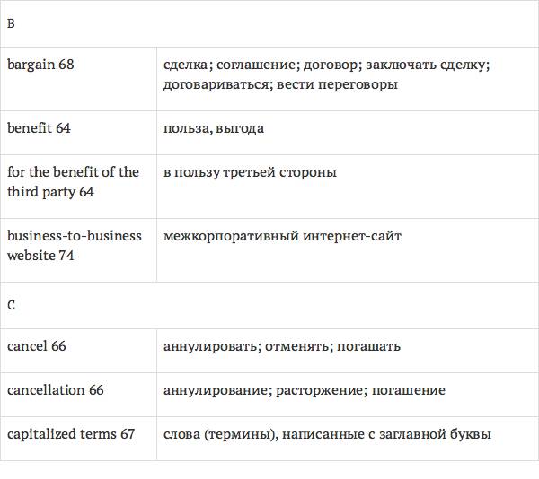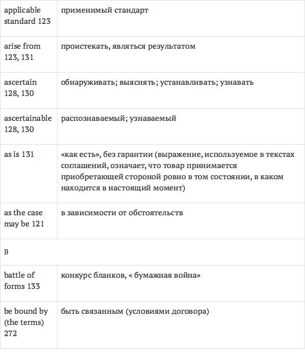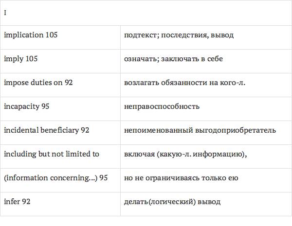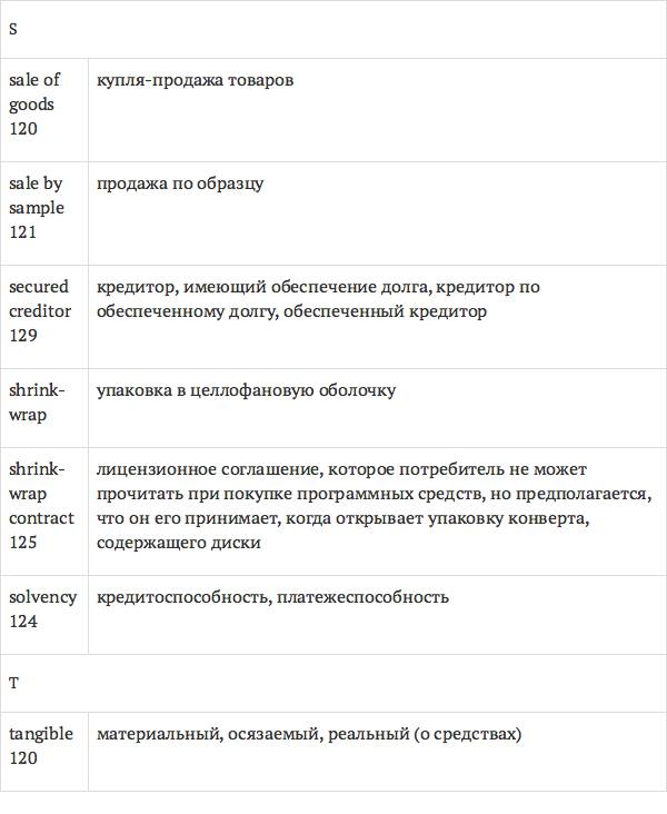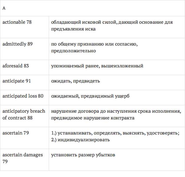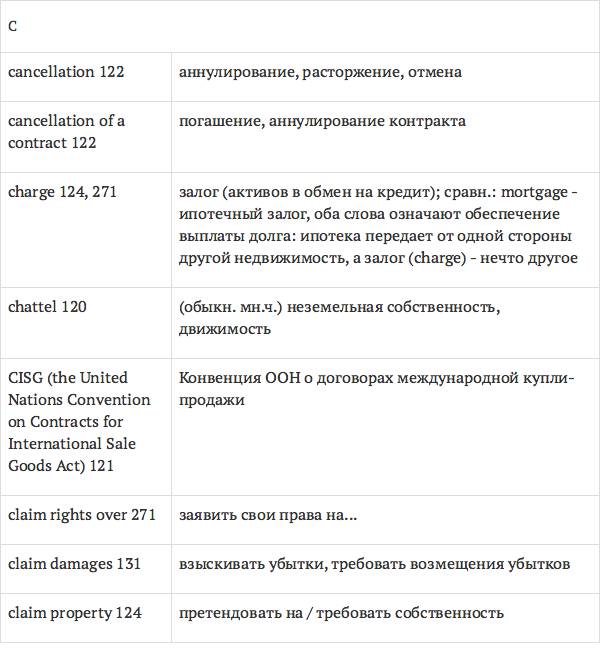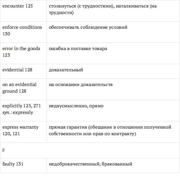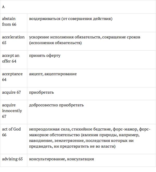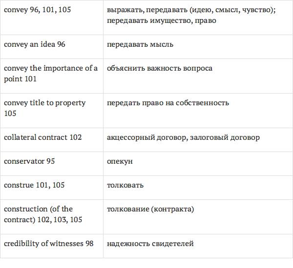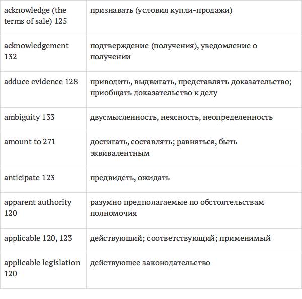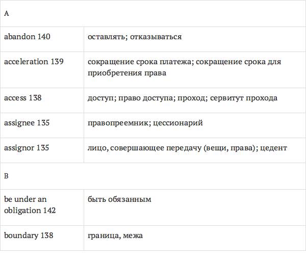 Задача глоссария – дать возможность лицам, изучающим юридический английский язык с помощью учебника International Legal English, правильно понимать основные правовые понятия, формулировки, термины, а также отдельные общеупотребительные слова и знать их русские эквиваленты. Глоссарий способствует усвоению юридической лексики в сфере коммерческого права, что позволит обеспечить высокое качество перевода аутентичных текстов.