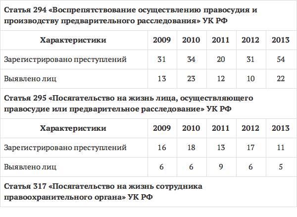 Наши наблюдения за период с 2000 по 2013 г. свидетельствуют об опасных тенденциях в структуре преступности против профессиональных участников уголовного судопроизводства в большинстве субъектах СКФО.
