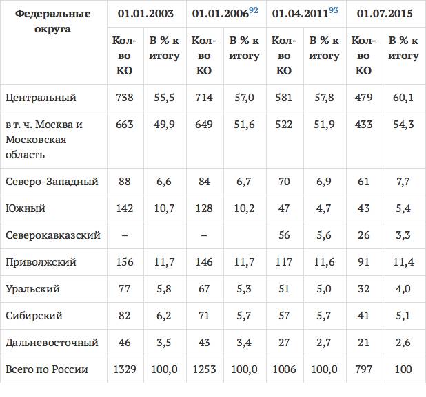 Размещение кредитных организаций по федеральным округам91