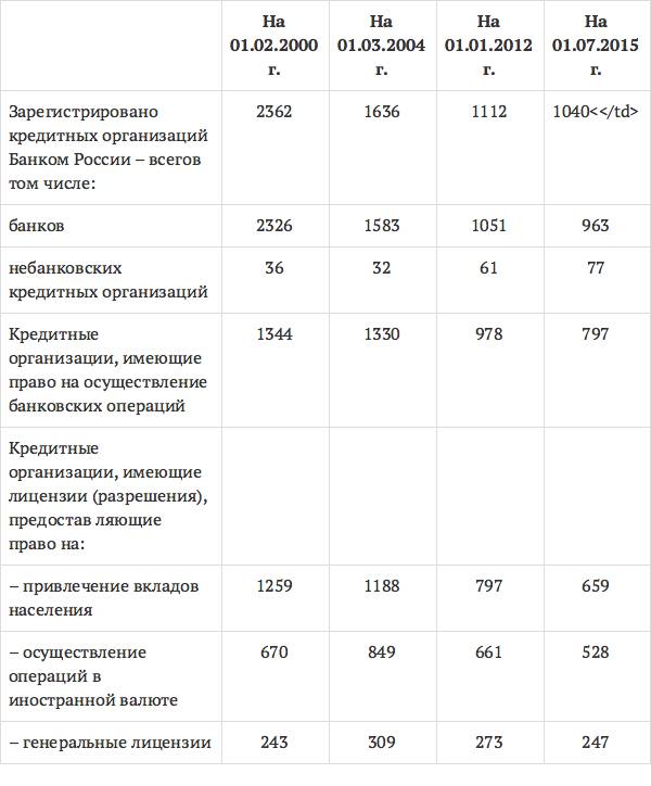 Количество и структура кредитных организаций России95