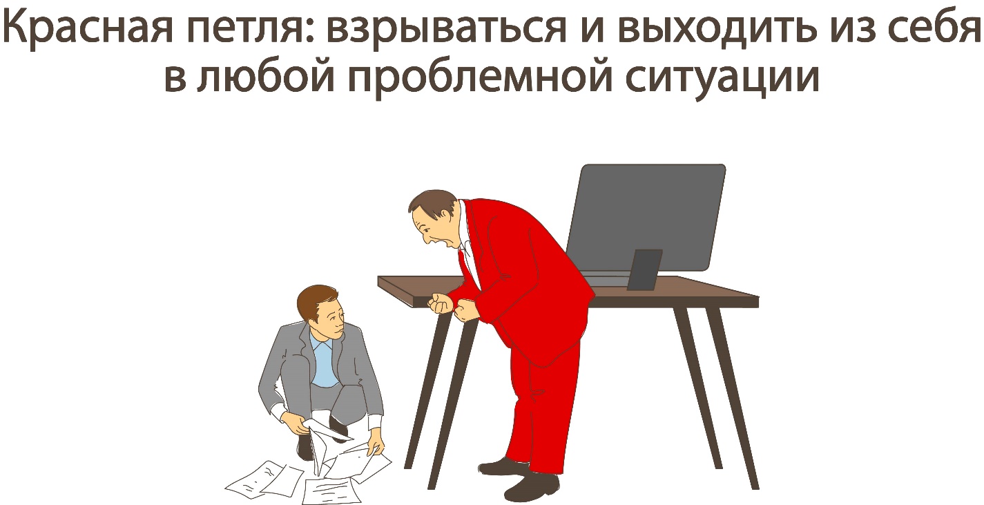 Когда человек находится в Красной петле, то возможность уступить или смириться с текущим положением дел просто не рассматривается. Если он встречает сопротивление окружающих, то концентрируется не на конечной цели либо взаимовыгодном решении, а на оппоненте, желая довести его до поражения. Даже когда понятно, что победить не удастся, он все равно не уступает, а доводит до краха все стороны конфликта.