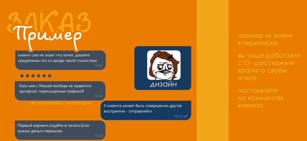 • делиться опытом – о субъективности вкуса, прошлых заказах с менеджерами (только как можно короче);