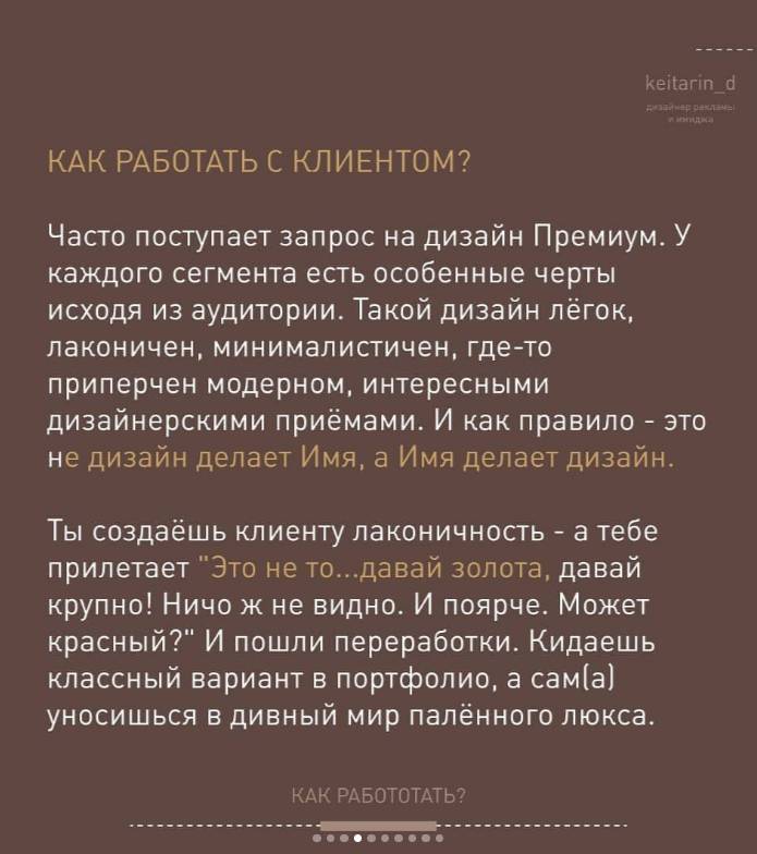 Клиент относится к необходимости создать определенного толка макет по дизайну и тексту не так чувствительно, как специалист. Он видит конкурентный ряд и часто не понимает почему нужно написать так же как они, но непременно думает, что отставать нельзя. Главное, чтобы больше покупали и чётче видели.