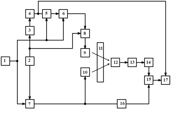 Газовую камеру 11 облучают двумя потоками излучения Ф0l1 и Ф0l2 на опорной l1 и рабочей l2 длинах волн соответственно. Прошедшие через газовую камеру потоки излучения будут равны соответственно: