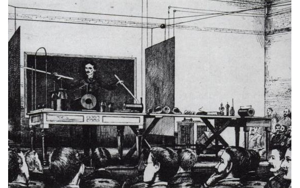 Тесла демонстрирует принципы радиосвязи, 1891 год