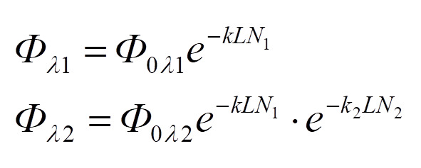 где: Ф0l1 и Ф0l1 – подающие на газовую камеру потоки излучения на длинах волн l1 и l1 соответственно, Фl1, Фl2 – потоки излучения после прохождения через после прохождения через газовую камеру на длинах волн l1 и l2 соответственно,