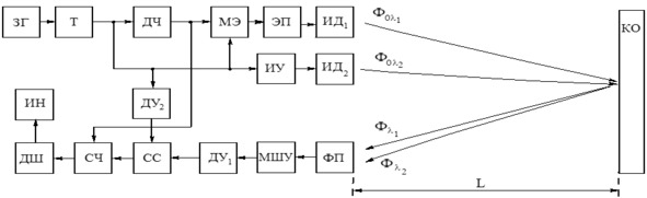Кроме этого, в случае частичного совпадения спектр излучения контролируемого объекта со спектральной чувствительностью второго приемника излучений 7 на чувствительную площадь последнего воздействует немодулированный поток излучения от контролируемого объекта на длине волне λ2m.