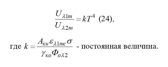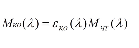где: ελ1mк0 – спектральный коэффициент теплового излучения контролируемого объекта на длинах волн λ1m; Mλ1mчт – спектральная плотность энергетической светимости черного тела на длинах волн λ1m; τλ1mс – коэффициент пропускания атмосферы на длинах волн λ1m.