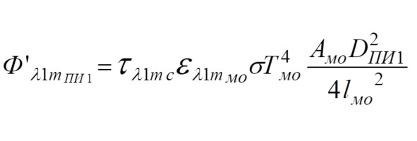 где: ελ1mм0 – спектральный коэффициент теплового излучения модулятора на длинах волн λ1m; Tмо – температура модулятора; Амо – площадь излучаемой поверхности модулятора; lмо – расстояние между модулятором и первым приемником излучения.