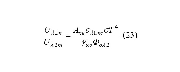 где: ελ2mко – спектральный коэффициент теплового излучения контролируемого объекта на длинах волн λ2m;