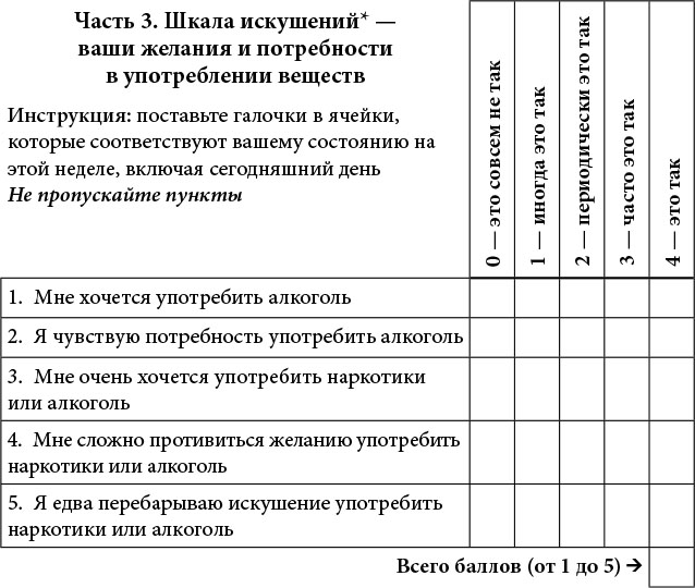 Чтобы разобраться с этим, заполните шкалу искушений ниже. Как видите, вопросы в ней относятся к тому, чего вам хотелось на прошлой неделе. Шкала составлена под такие привычки, как употребление алкоголя, но вы можете приспособить ее для оценки своих зависимостей, будь то еда, фильмы для взрослых или любые другие.