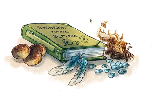 Обложка из зелёной кожи, четыре орешка вместо трёх. Шерсть, а может быть, чешуя или перья. Бесконечная болтовня Черепахи Финеаса… Шишки-кочерыжки! Это же та самая книга, которую он продал вчера вечером!