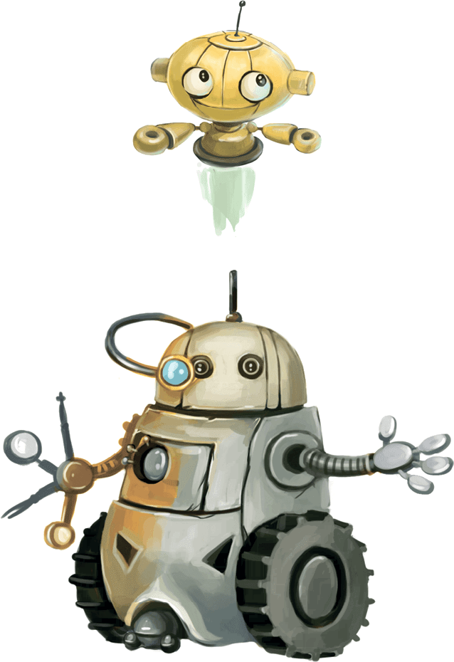 Каких только роботов тут не было: с двумя конечностями, с четырьмя и даже с восемью, с глазами спереди и расположенными по окружности головы, ходящих, ползающих и даже парящих над землёй. Кругом раздавались приветствия. Винглики похлопывали друг друга манипуляторами по плечам, желали полного заряда и приглашали на чашечку масла. Джинглики с удивлением заметили даже нескольких механических питомцев, напоминающих собак или кошек.