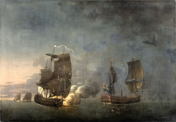 * Французский фрегат «Belle Poule» (32) с фрегатом «Licorne» (26), корветом «Hirondelle» (10) и люгером «Coureur» (8) 17 июня на расстоянии 23 миль (37 км) от мыса Лизард обнаружили британскую эскадру адмирала Кеппеля. Поскольку Кеппель не хотел допустить, чтобы о выходе эскадры в море стало известно французскому командованию, он приказал задержать все четыре корабля. Линейный корабль «Америка» (64) и фрегат «Милфорд» (28) после короткого боя заставили «Licorne» спустить флаг. «Аретуза» (32) и катер «Алерт» (12) догнали «Belle Poule» и люгер «Coureur». Британцы дали предупредительный выстрел по курсу французского фрегата, но в ответ получили бортовой залп. В ходе двухчасового боя «Аретуза» получила серьезные повреждения, в частности, потеряла грот-мачту, а стеньги других мачт висели за бортом на вантах. «Belle Poule» потеряла все паруса нижнего яруса, но за счет верхних парусов смогла выйти из боя и укрыться в бухте французского побережья. Тем временем «Coureur» был настигнут британским катером «Alert» и после некоторого сопротивления сдался. Корвет «Hirondelle» сумел уйти невредимым. «Аретуза» из экипажа в 198 человек потеряла 8 человек убитыми и 36 ранеными; «Belle Poule» потеряла 45 убитыми и 57 ранеными. Это происшествие определило дату начала войны, хотя формально война еще не была объявлена. – А.С.