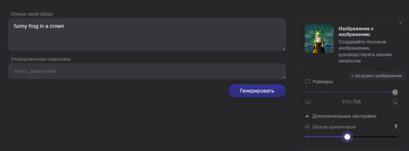Он позволяет взять за основу не только текст, но и картинку, которая тоже влияла на то, что создаем.