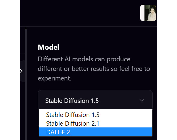 Можно выбрать 3 модели. Dalle 2 – платный. Если осваиваться в этом направлении, то лучше Stable Diffusion версию 1,5, так как вторая версия специфическая и многие были в ней разочарованы.
