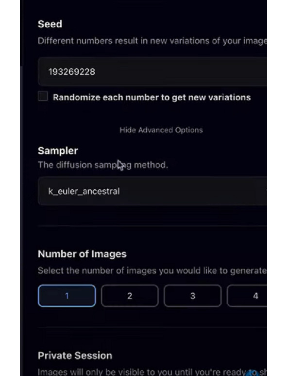 Может применяться Sampler – это алгоритм по которому создается картинка. И есть у PlaygroundAI странная особенность, когда используется вот этот алгоритм.