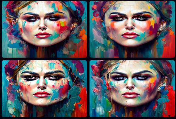 Нейросеть тренировалась на картинках 512 Х 512 и поэтому лучше всего, с точки зрения композиции получается квадратная композиция. Неплохо получается вертикальные и горизонтальные.