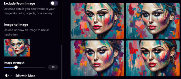 Если я хочу, чтобы они были менее похожи, то мне нужно изменить силу изображения. Я уменьшу с 30% до 10%: