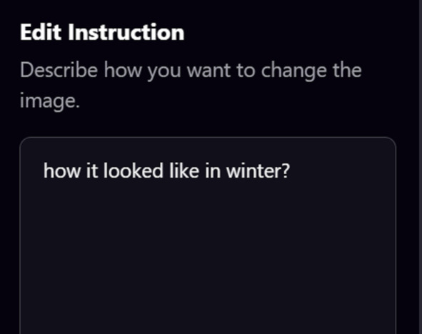 Если в запросе при создании картинки пишутся ключевые слова, то здесь пишем какие – то вопросы или сделай так, чтобы здесь была зима.